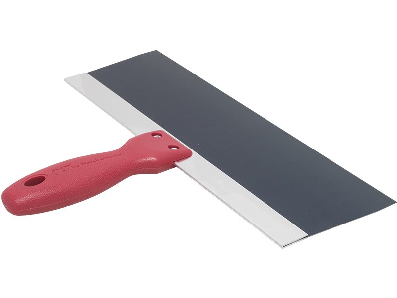 Der Flächenspachtel von Marshalltown QLT hat ein hochwertiges, gehärtetes Blatt aus Blaustahl, dass mit einer Aluminium-Trägerplatte verbunden ist. Durch die Vernietung des Spachtels mit der Trägerplatte ist sichergestellt, dass der Griff sich auch nach starker Beanspruchung nicht löst. Der Flächenspachtel ist ein perfektes Mehrzweckwerkzeug, denn er kann zum Auftragen von Wandkitt benutzt werden, sowie auch zum Füllen von Trockenbaufugen und zum Abschaben von Oberflächen. Er hat ein konisches Blatt, das hervorragend für Eckarbeiten ist. Der Kunststoffgriff liegt gut in der Hand und ist pflegeleicht.