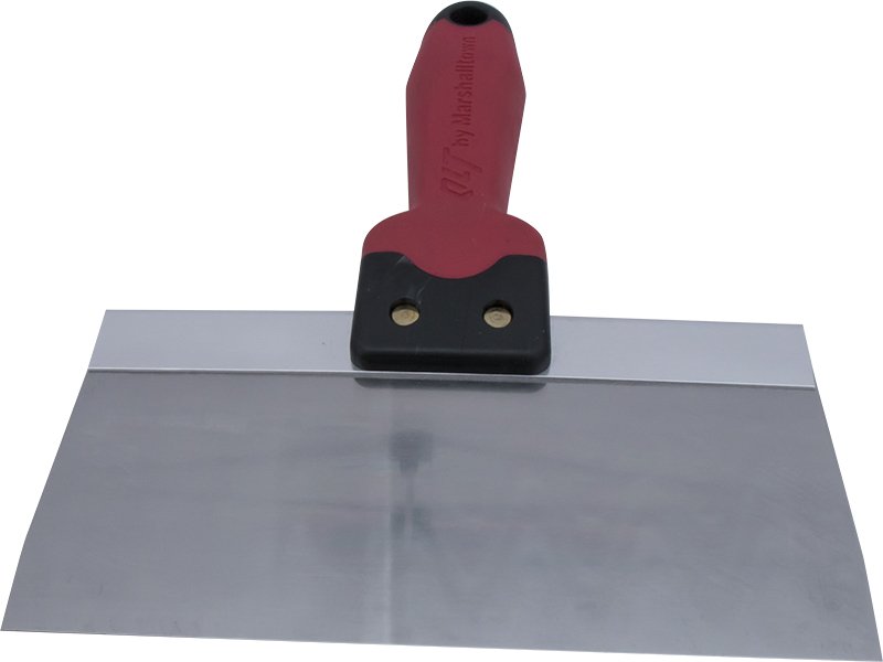 Der Flächenspachtel von Marshalltown QLT hat ein hochwertiges, gehärtetes Blatt aus Edelstahl, dass mit einer Aluminium-Trägerplatte verbunden ist. Durch die Vernietung des Spachtels mit der Trägerplatte ist sichergestellt, dass der Griff sich auch nach starker Beanspruchung nicht löst. Der Flächenspachtel ist ein perfektes Mehrzweckwerkzeug, denn er kann zum Auftragen von Wandkitt benutzt werden, sowie auch zum Füllen von Trockenbaufugen und zum Abschaben von Oberflächen. Er hat ein konisches Blatt, das hervorragend für Eckarbeiten ist. Der Softgrip Griff liegt gut in der Hand und ist pflegeleicht.