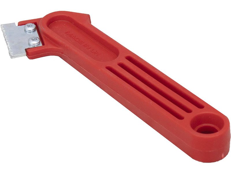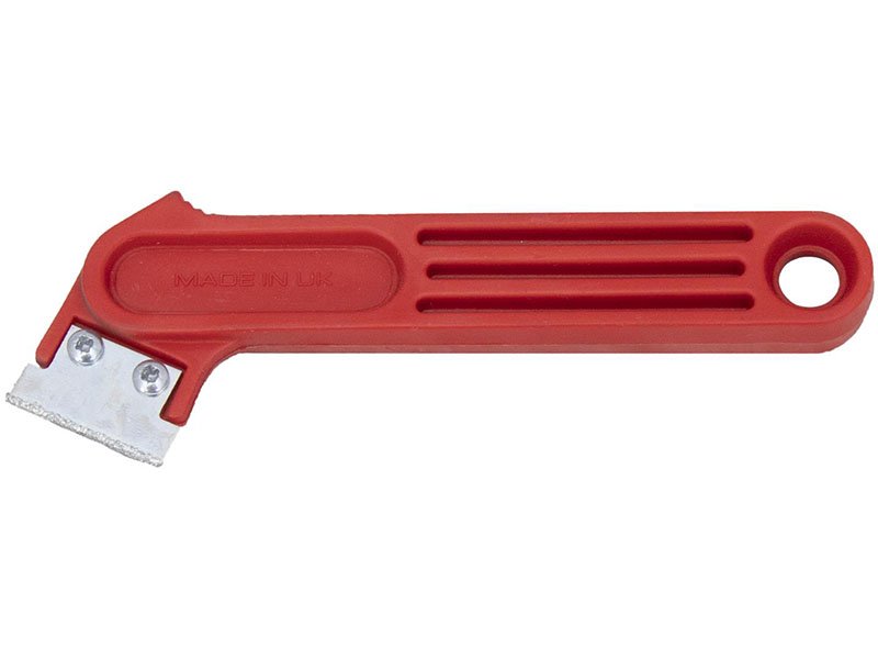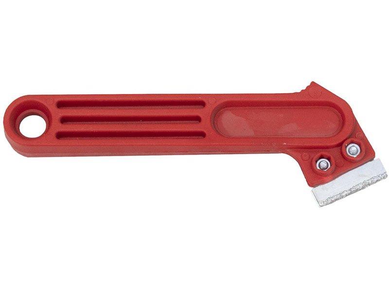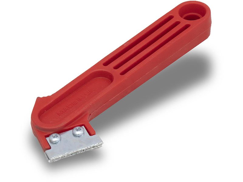 Marshalltown QLT rotes Fugenmesser: Mit Wolframkarbid beschichtetes Blatt zum Entfernen von Fugenmörtel. Austauschbare Klinge, leichter Kunststoffgriff. Maße: 178×76 mm.