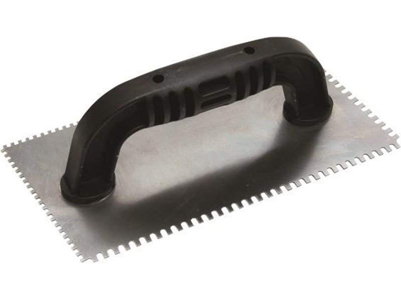 Marshalltown QLT Gezahnte Kelle, Eckig 2x2x2 mm/U 3×1,5×3 mm, 10 Grad gekürzt, Kunststoffgriff, Stahl, Maße: 229×102 mm