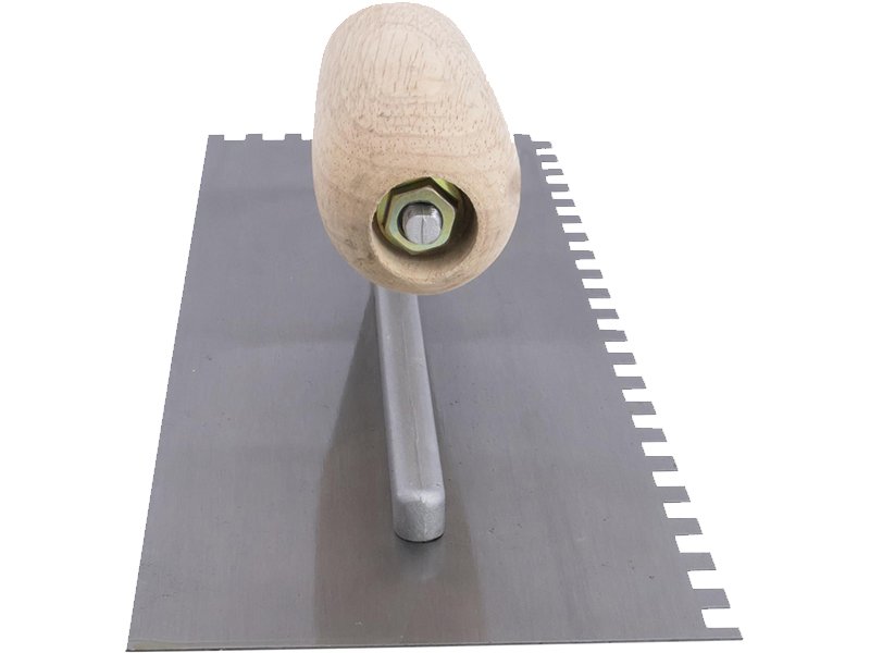 Die gezahnte Kelle von Marshalltown QLT ermöglicht präzises Auftragen von Klebstoff für Fliesen und Bodenbeläge. Langlebiges Design mit Holzgriff. Blattgröße: 279×114 mm. Eckig 4,5×4,5×4,5 mm.