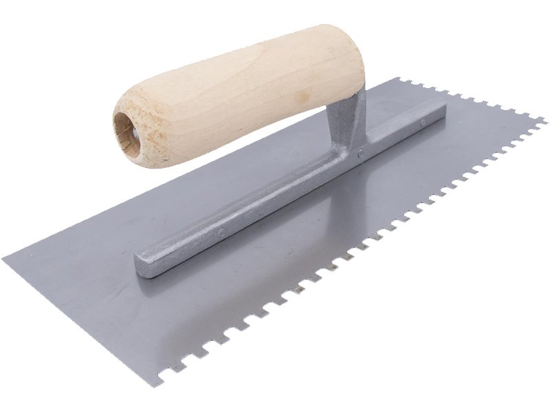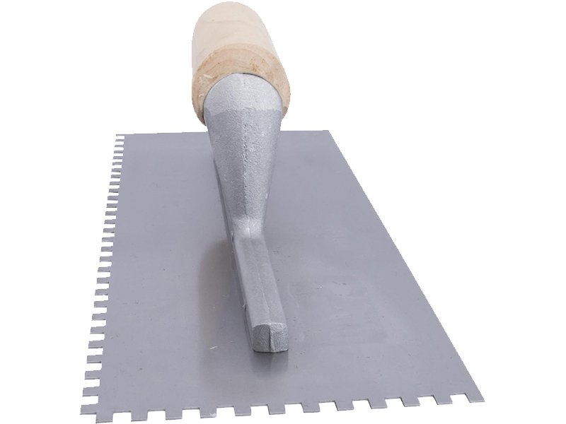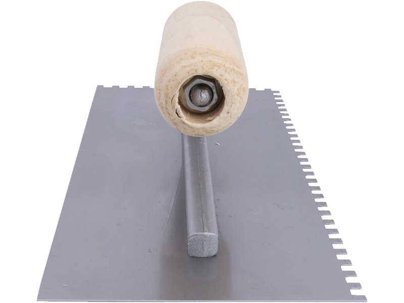 Marshalltown QLT gezahnte Kelle: Kontrollierte Klebstoffmenge beim Verlegen von Fliesen und Bodenbelägen. Haltbare Halterung, gehärtetes Stahlblatt, bequemer Holzgriff. 279×114 mm. Eckig 6x6x6 mm.