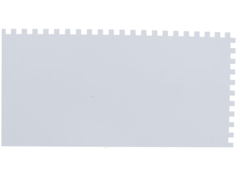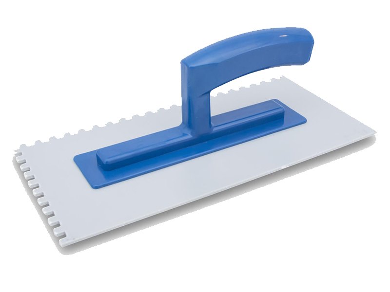 Die gezahnte Kelle von Marshalltown QLT wird zum Verlegen von Fliesen, Teppichen und anderen Bodenbelägen, die mit Klebstoff oder Fliesenkleber bestrichen werden, verwendet. Durch die Zahnung und Größe der Kerben kann man die Menge des aufgetragenen Klebstoffs kontrollieren. Die Halterung aus Kunststoff ist fest verbunden mit dem Kunststoffblatt. Der Kunststoffgriff liegt gut in der Hand und ist pflegeleicht. Bei dieser Kelle sind zwei Seiten gezahnt und zwei glatt und die Blattgrösse ist 279×140 mm.