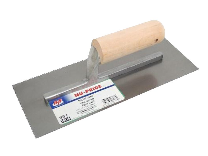 Marshalltown QLT gezahnte Kelle: Kontrollierte Klebstoffmenge beim Verlegen von Fliesen und Bodenbelägen. Haltbare Halterung, gehärtetes Stahlblatt, bequemer Holzgriff. 279×114 mm. U -Zahnung: 1,5×1,5×1,5 mm.