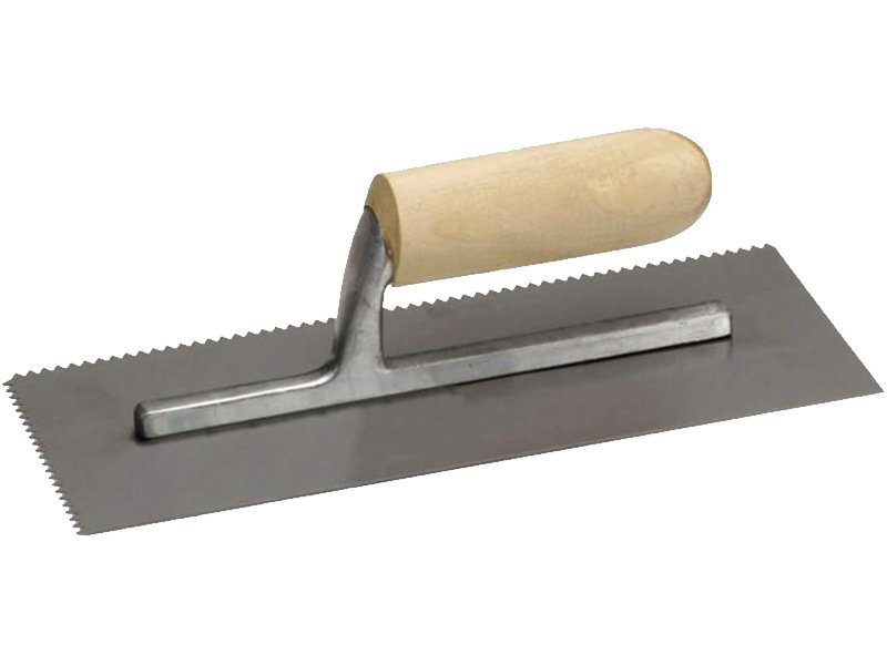 Marshalltown QLT gezahnte Kelle: Kontrollierte Klebstoffmenge beim Verlegen von Fliesen und Bodenbelägen. Haltbare Halterung, gehärtetes Stahlblatt, bequemer Holzgriff. 279×114 mm. V-Zahnung: 4,5×4 mm.