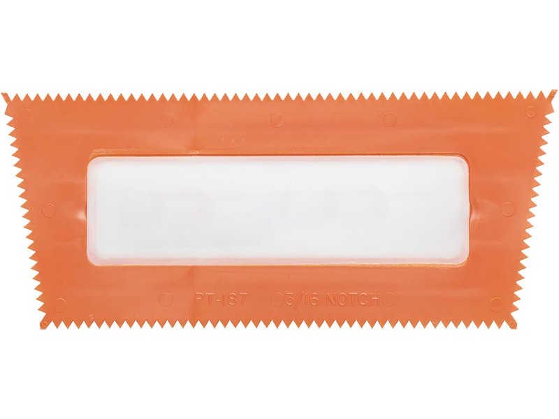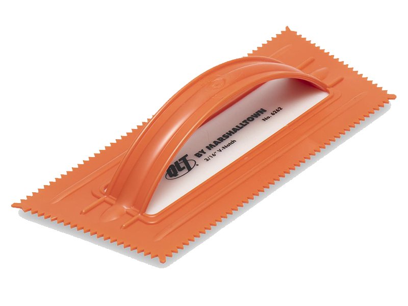 Marshalltown QLT Gezahnte Kelle, V-4,5×4,5 mm, Kunststoffgriff, Kunststoff, orange, Maße: 241×108 mm