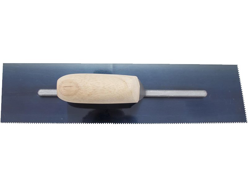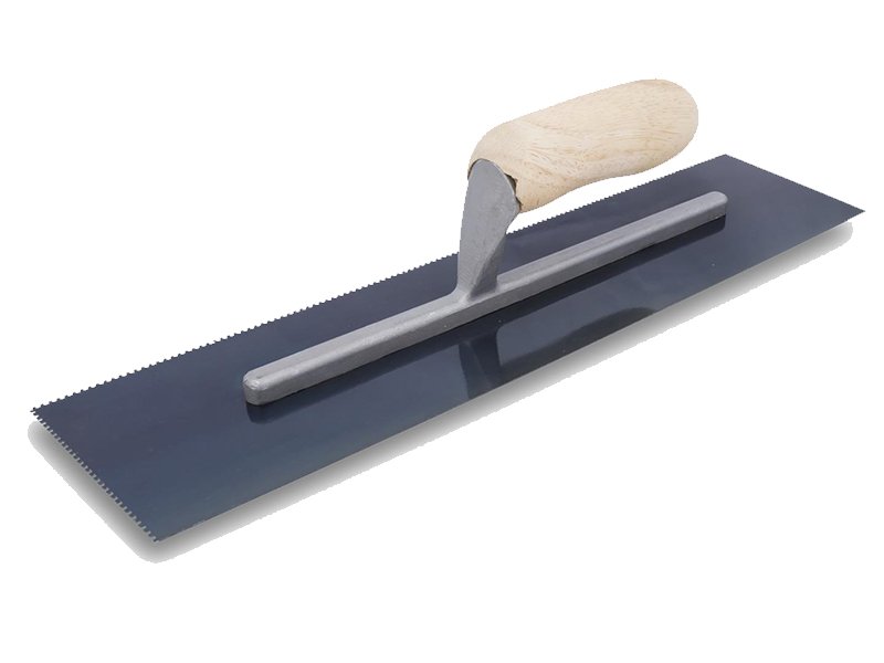 Marshalltown QLT Gezahnte und einseitig gekürzte Kelle, Eckig 1,5×1,5×1,5 mm, Holzgriff, Blaustahl, Maße: 406×102 mm