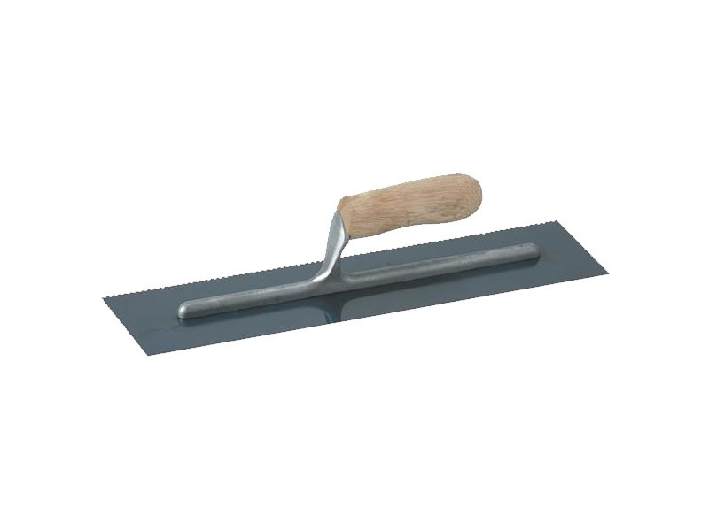 Marshalltown QLT Gezahnte und einseitig gekürzte Kelle, Flaches V-2,5×2,5×2,5 mm, Holzgriff, Blaustahl, Maße: 406×102 mm