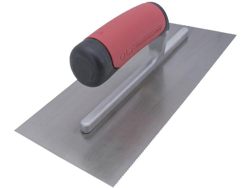 Marshalltown QLT gezahnte Kelle: Perfekt zum Verlegen von Fliesen und Bodenbelägen. Kontrolliert die Klebstoffmenge mit Zahnung und Kerbgröße. Aluminiumguss-Halterung, gehärtetes Stahlblatt. Softgrip-Griff. 279×114 mm Blattgröße. U – 1,5×0,75×0,75 mm.