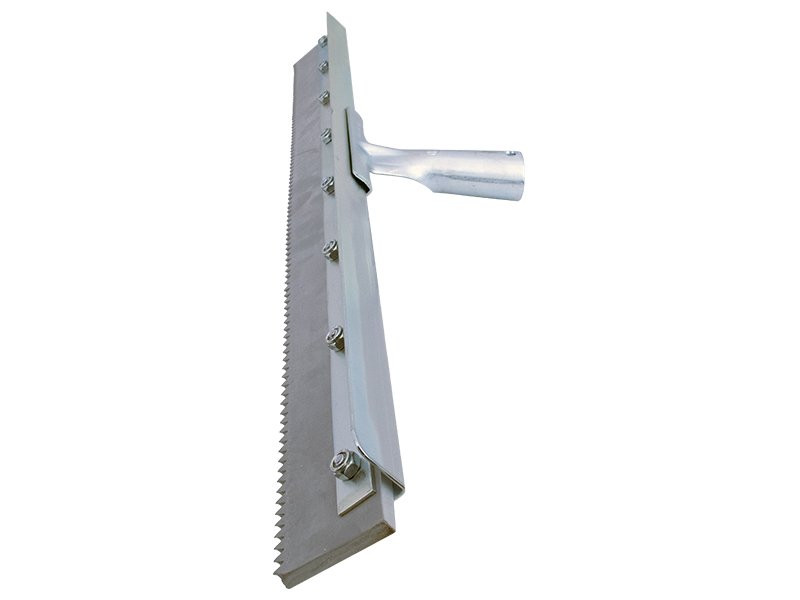 Die Marshalltown QLT gezahnte Rakel aus robustem Stahl ist ideal für die Dosierung von Materialien für Epoxidböden. Präzise V-förmige Kerben 3 mm erleichtern die Materialverwaltung. Stiel separat erhältlich. Länge: 457 mm.