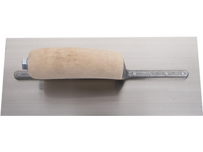 Die Marshalltown QLT Glättkelle aus Carbonstahl: Perfekt zum Nivellieren, Verteilen und Veredeln von Wänden und Böden. Robuster Holzgriff für Komfort. Aluminiumguss-Schaft für maximale Festigkeit. Maße: 330×127 mm.