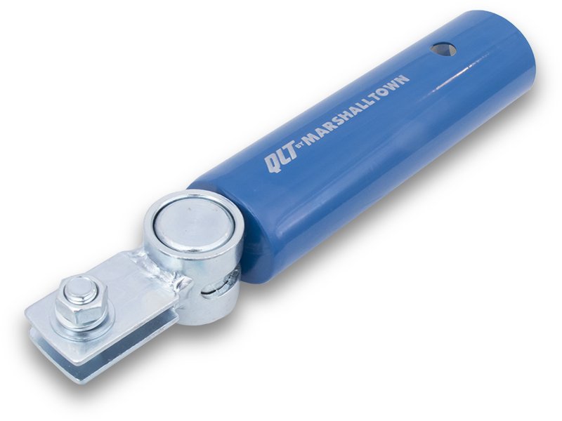 Der Marshalltown QLT Adapter ermöglicht die Platzierung des Stiels in jeder Position innerhalb eines 180 Grad Winkels. Man dreht den Stiel im Uhrzeigersinn, bis er einrastet, gegen den Uhrzeigersinn, um ihn zu entsperren. Der Adapter verbindet Druckknopfstiele mit Kantenkellen, Nutfräsen, Bodenglättern und Estrichglättern, damit man dann vom Handwerkzeug zum Bodenwerkzeug verwandeln kann. Dieser Adapter ist für 44 mm Druckknopfstiele.