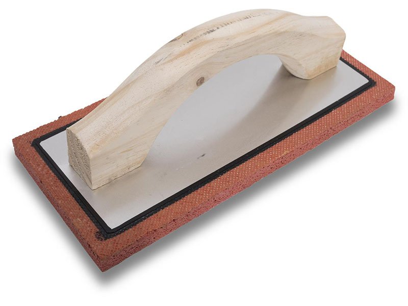 Marshalltown QLT Gummi-Glätter: Rotes Schaumstoffblatt (19 mm dick)auf Aluminium-Trägerplatte, für strukturierte Oberflächen. Holzgriff, Maße: 241×102 mm.
