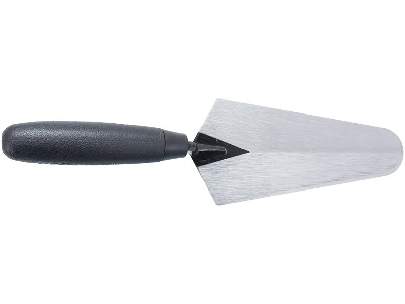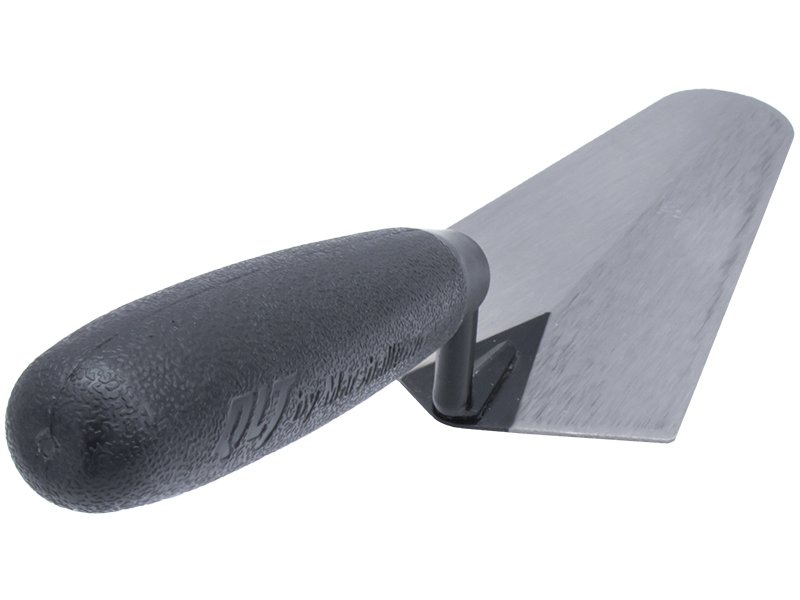 Marshalltown QLT Messkelle: Schmal, robust und vielseitig. Ideal für enge Stellen, Messen und Mischen von Mörtel. Gehärtete Stahlklinge und langlebiger Kunststoffgriff. Maße: 178×86 mm