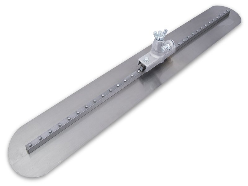 Bodenglätter von Marshalltown aus Carbonstahl mit abgerundeten Enden und Vollwinkel-Kippgelenk. Kompatibel mit Gabelkopf-Stielen. Maße: 1219×127 mm.