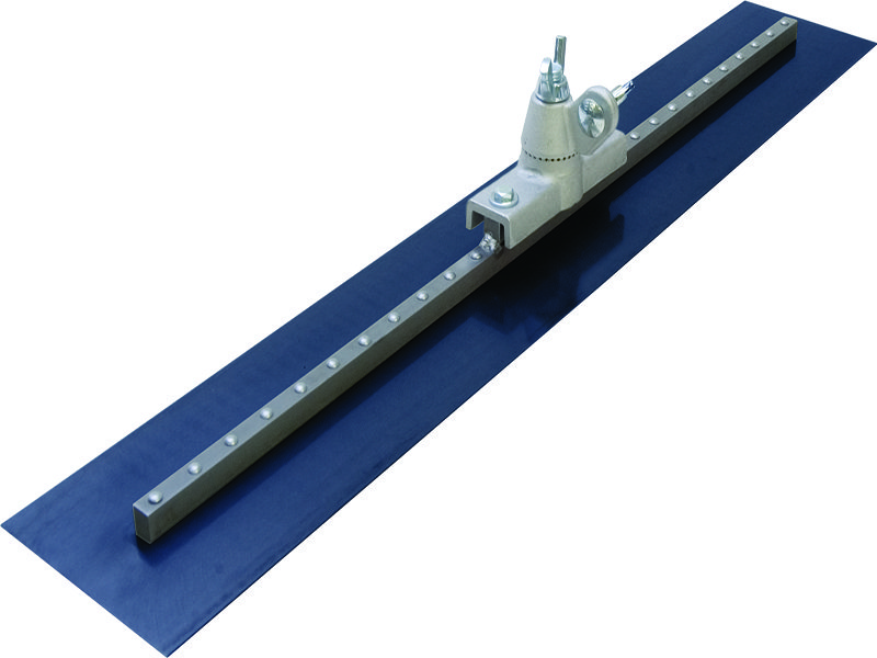 Bodenglätter von Marshalltown aus Blaustahl mit eckigen Enden und Vollwinkel-Kippgelenk. Kompatibel mit Gabelkopf-Stielen. Maße: 610×127 mm.