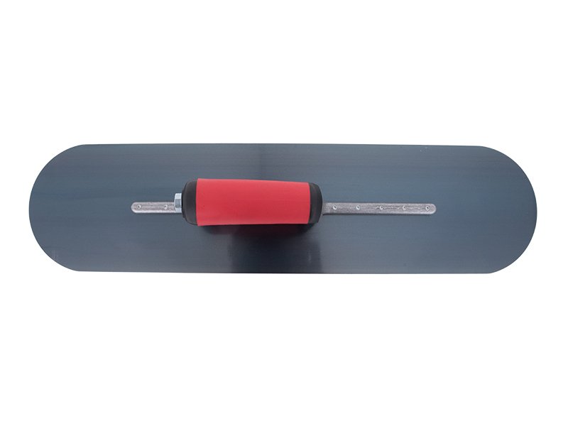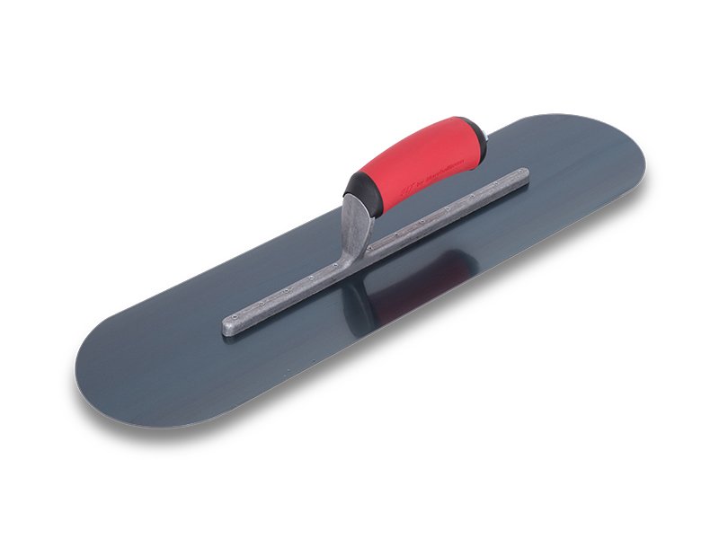 Die vollabgerundete Glättkelle von Marshalltown QLT: Robustes Blaustahlblatt, keine Furchen oder Rillen, sicherer Softgrip Griff. Maße: 508×127 mm. 12 sichtbare Nieten.