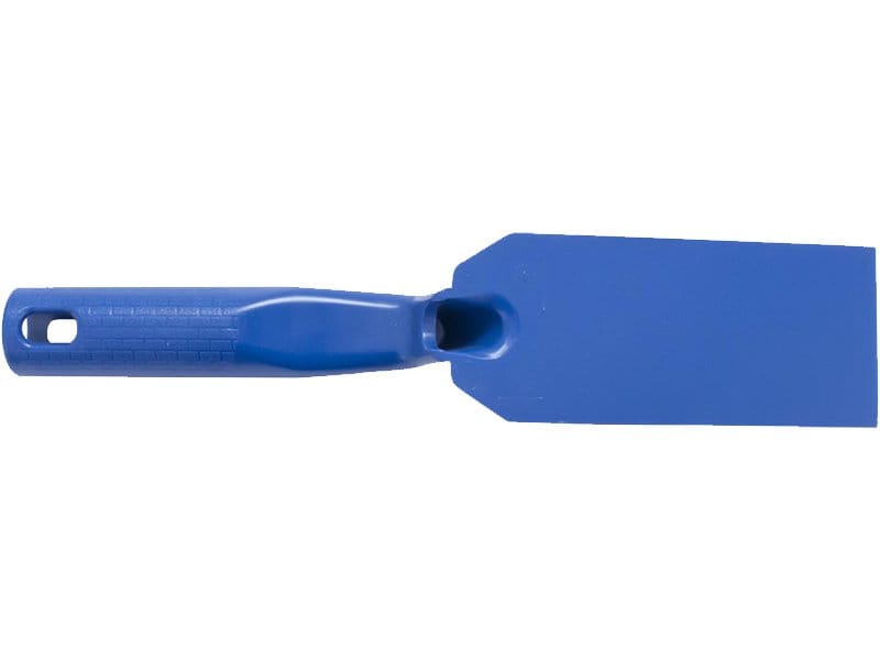 Diese Randkelle von Marshalltown ist aus blauem Kunststoff und sehr flexibel, aber trotzdem robust. Diese schmale Kelle kommt leicht an enge Stellen, wo man mit den herkömmlichen Kellen nicht rankommt. Sie ist hervorragend zum Auftragen von Bitumen oder anderen Klebern geeignet, da sie preisgünstig ist. Es gibt genügend Einsatzmöglichkeiten für diese Kelle, daher hat sie auch ein Aufhängeloch zur besseren Aufbewahrung.