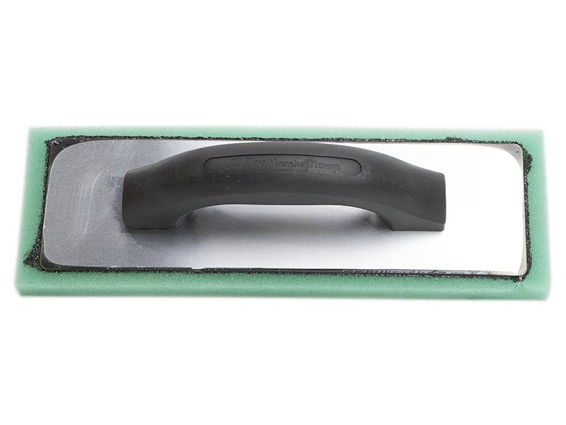 Marshalltown QLT Schaumstoff-Glätter: Grünes Schaumstoffblatt, fest an Aluminium-Trägerplatte. Ideal für Verputzer, Stuckateure. Fein, 19 mm dick. Komfortabler, pflegeleichter Kunststoffgriff. Maße: 305×102 mm.