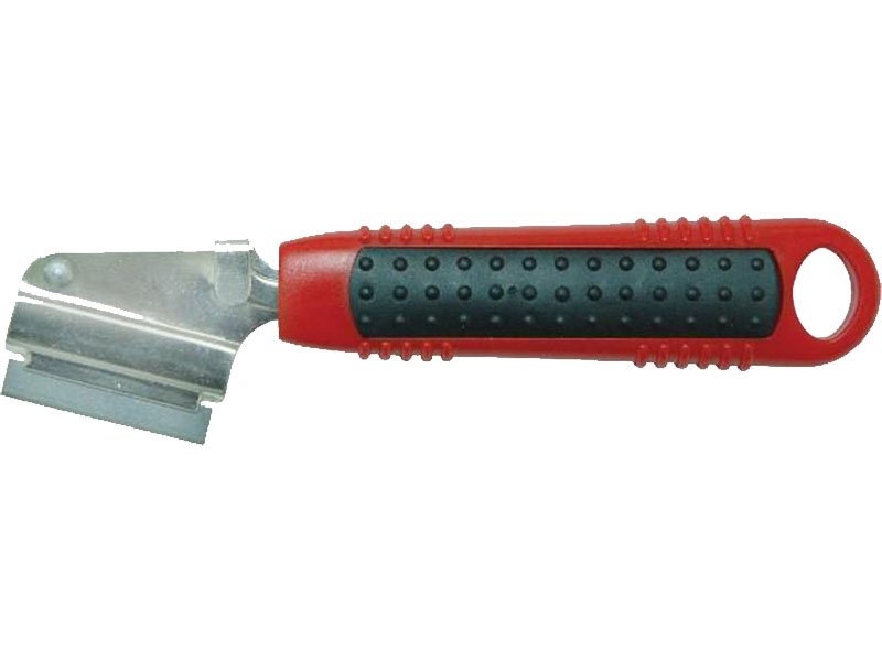 Das Marshalltown Schneidemesser hat einen Softgrip Griff, der geriffelt ist, damit er nicht aus der Hand rutscht. Der Metallrahmen hält die Klingen fest und stabil. Die Klingen sind austauschbar. Am Griffende ist ein Aufhängeloch zur besseren Aufbewahrung.