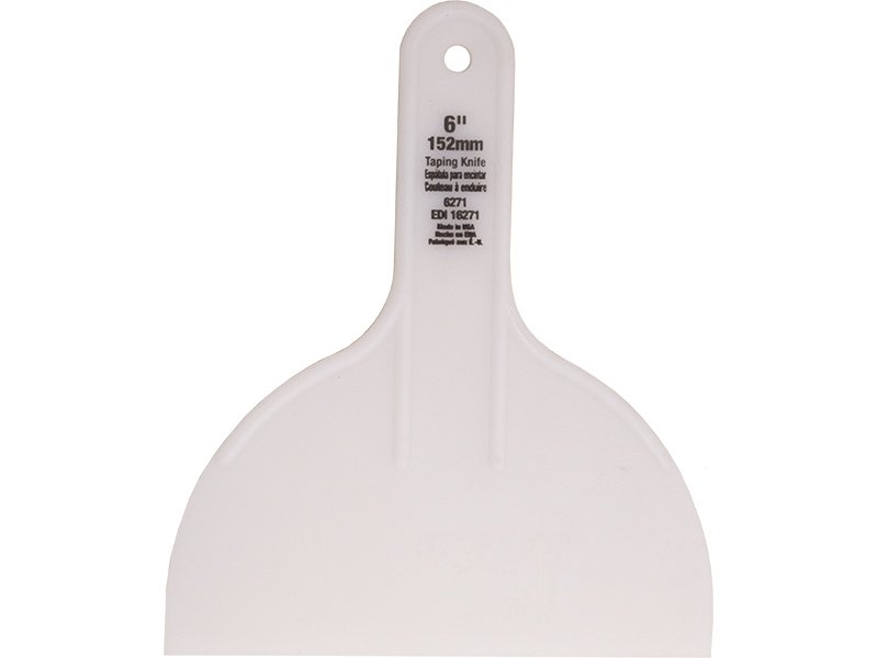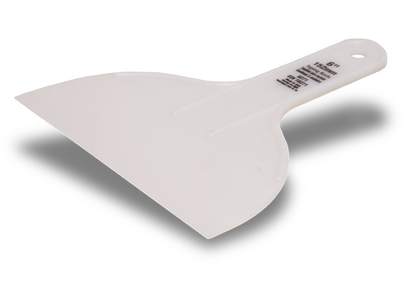 Marshalltown QLT Spachtel aus flexiblem, weißem Kunststoff mit verstärktem, biegsamem Griff. Ideal für den einmaligen Gebrauch. Maße: 152×89 mm.