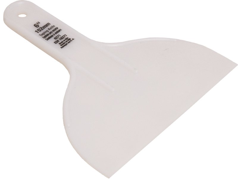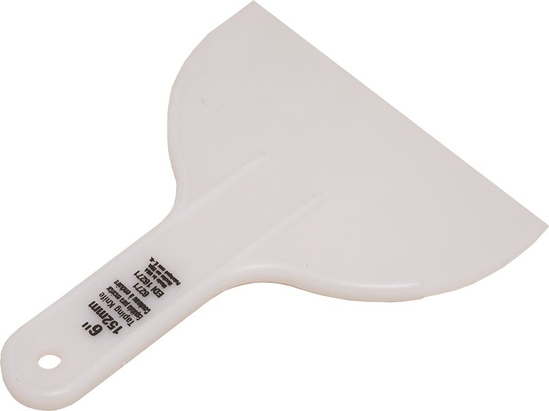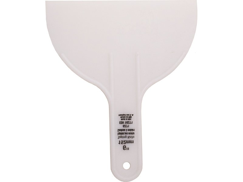 Marshalltown QLT Spachtel aus flexiblem, weißem Kunststoff mit verstärktem, biegsamem Griff. Ideal für den einmaligen Gebrauch. Maße: 203×95 mm.