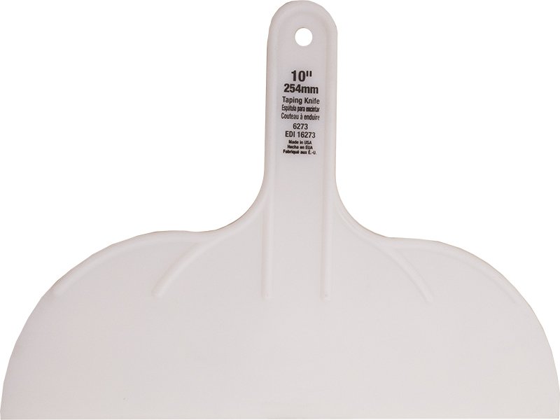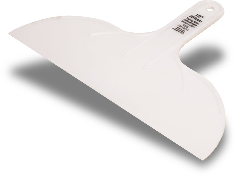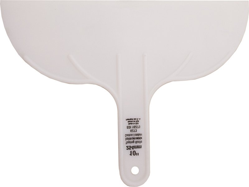 Marshalltown QLT Spachtel aus flexiblem, weißem Kunststoff mit verstärktem, biegsamem Griff. Ideal für den einmaligen Gebrauch. Maße: 254×79 mm.
