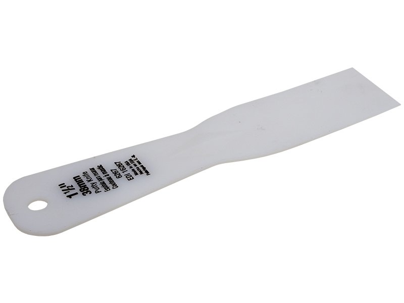 Marshalltown QLT Spachtel aus flexiblem, weißem Kunststoff mit verstärktem, biegsamem Griff. Ideal für den einmaligen Gebrauch. Breite: 38 mm.