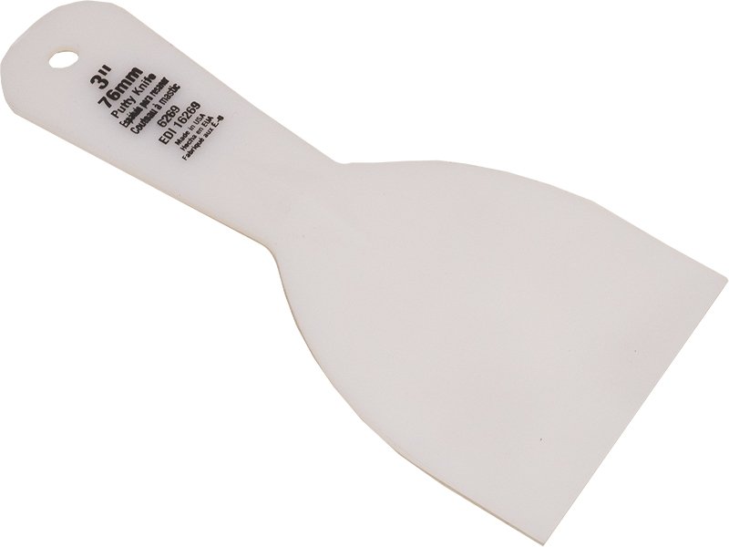 Marshalltown QLT Spachtel aus flexiblem, weißem Kunststoff mit verstärktem, biegsamem Griff. Ideal für den einmaligen Gebrauch. Breite: 76 mm.