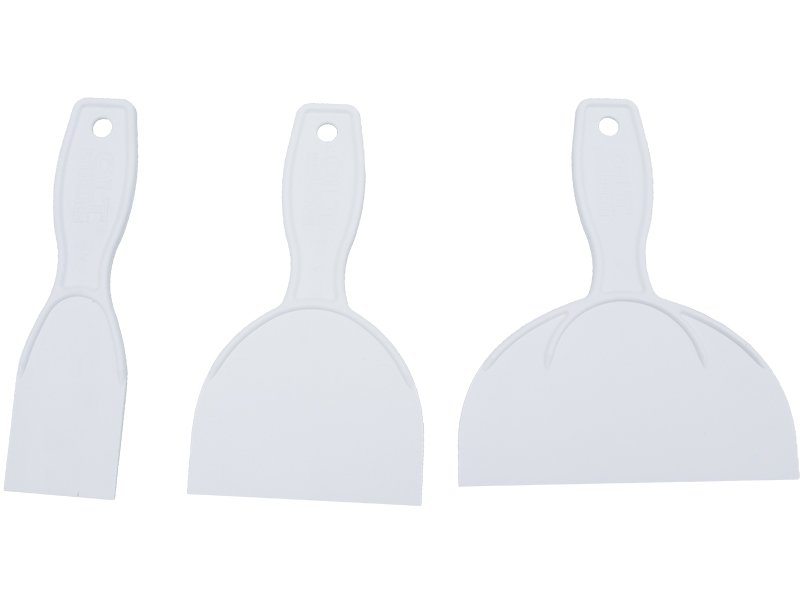 Vielseitiges Marshalltown QLT Spachtel-Set mit biegsamen, bruchfesten Blättern aus schlagfestem Polystyrol und komfortablen Griffen. Inklusive 51mm, 102mm und 152mm Blattgrößen.