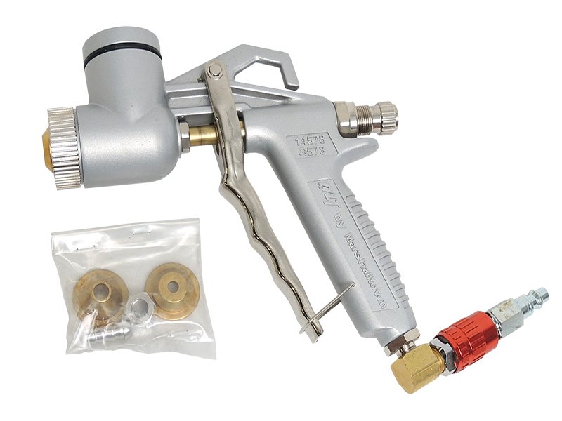 Marshalltown QLT Sprühpistole aus Stahl mit praktischem Luftregulierventil für präzise Durchflusskontrolle. Einfacher Zugauslöser und einstellbarer Auslöser-Stop für mehr Kontrolle und Konsistenz im Muster. Sieben Öffnungsgrößen reduzieren übermäßiges Sprühen. Trichter separat erhältlich (14608).