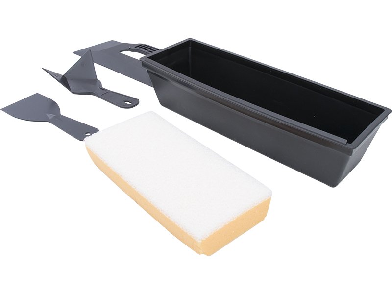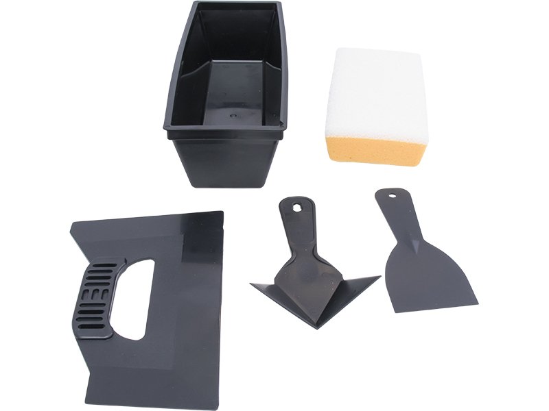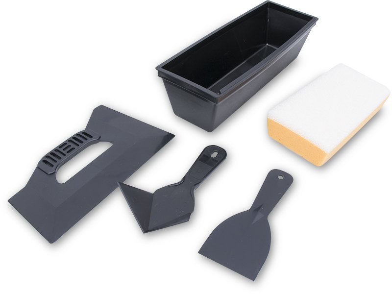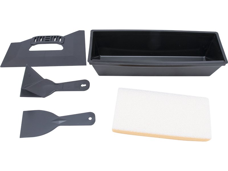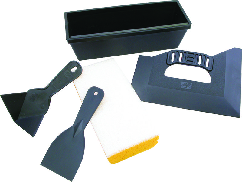 Enthält Handschleifer, Kunststoff-Spachtel, Eckwerkzeug, Dreikantmesser und 254 mm Maurerpfanne