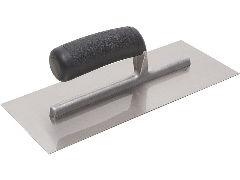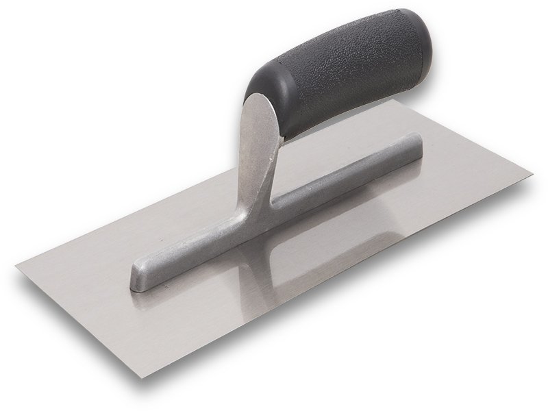 Diese Trockenbaukelle von Marshalltown QLT hat eine Halterung aus Aluminiumguss, die leicht, aber doch robust ist. Sie ist an das flexibles Carbonstahlblatt befestigt , das temperiert, geschliffen und poliert ist. Die Kelle hat einen schwarzen Kunststoffgriff, der pflegeleicht ist. Diese Kelle ist ein zuverlässiges Werkzeug um beim Trockenbau gute Arbeit zu leisten.