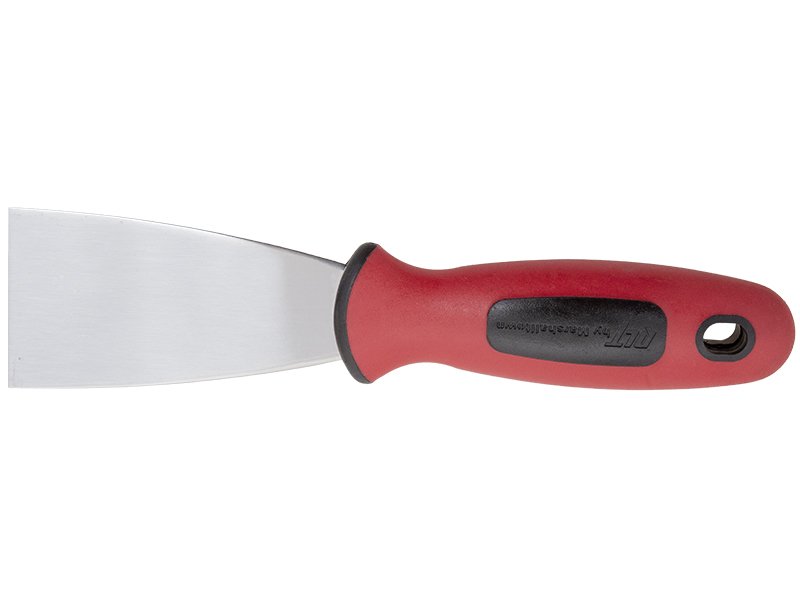 Marshalltown QLT Vollflexibler Fugenspachtel: Ideal zum Spachteln, Abschaben, Tapeten entfernen. Carbonstahl, Softgrip Griff, Aufhängeloch. Maße: 216×51 mm.