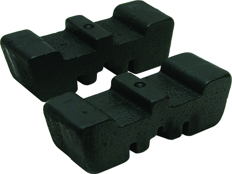 Werkzeuggewichte für alle Marshalltown und QLT Bodenglätter und Fresno-Glätter. Verkauft paarweise, je 2,5 kg. Maße: 157×127 mm.
