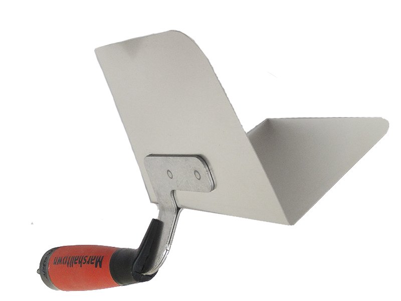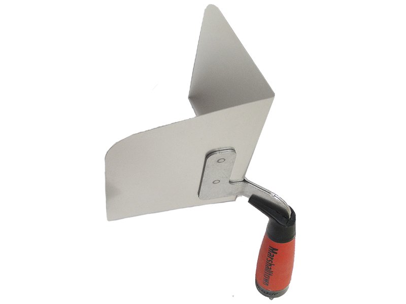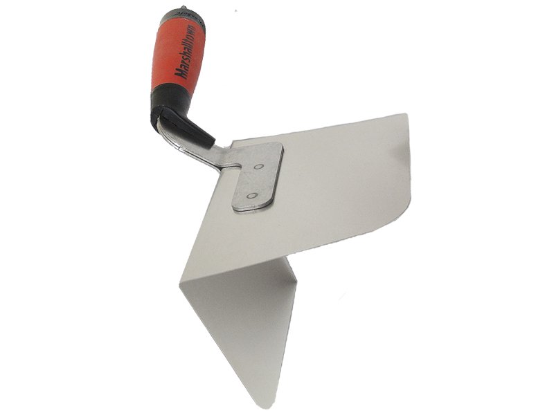 Die leichte Außeneckkelle von Marshalltown aus flexiblem Edelstahl mit Aluminiumhalterung. Perfekte Radiusecken, haltbar und leicht zu reinigen. Ideal für Trockenbauer, mit patentiertem Durasoft-Griff für weniger Ermüdung. Maße: 127×95 mm.