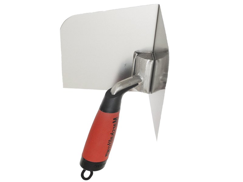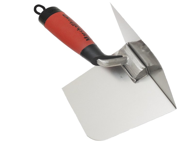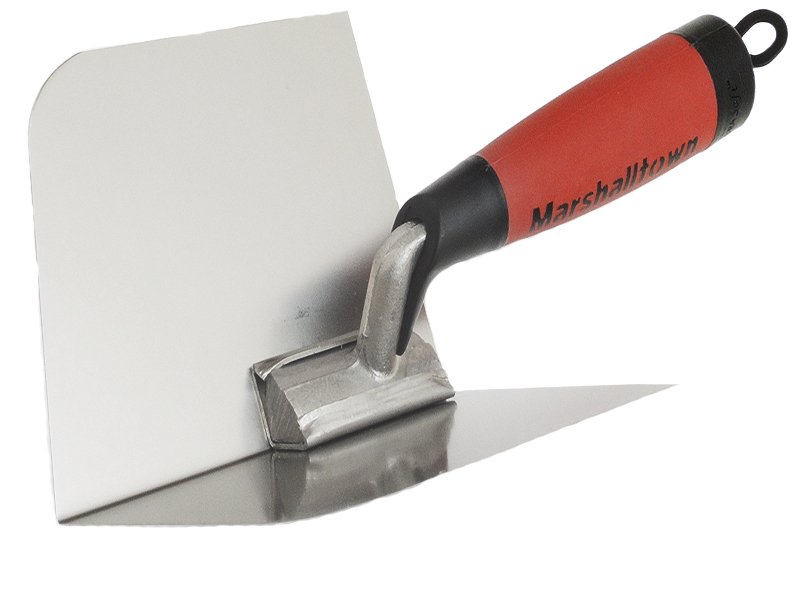 Die leichte Inneneckkelle von Marshalltown aus flexiblem Edelstahl mit Aluminiumhalterung. Perfekte Radiusecken, haltbar und leicht zu reinigen. Ideal für Trockenbauer, mit patentiertem Durasoft-Griff für weniger Ermüdung. Maße: 102×127 mm.