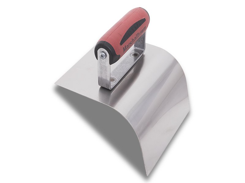 Marshalltown Innen-Rundkelle: Schwerer Edelstahl, Durasoft-Griff für Komfort und Haltbarkeit. Ideal für Bordsteine, Betonrinnen und Abrundungen. Radius von 51 mm. Maße: 127×89 mm.