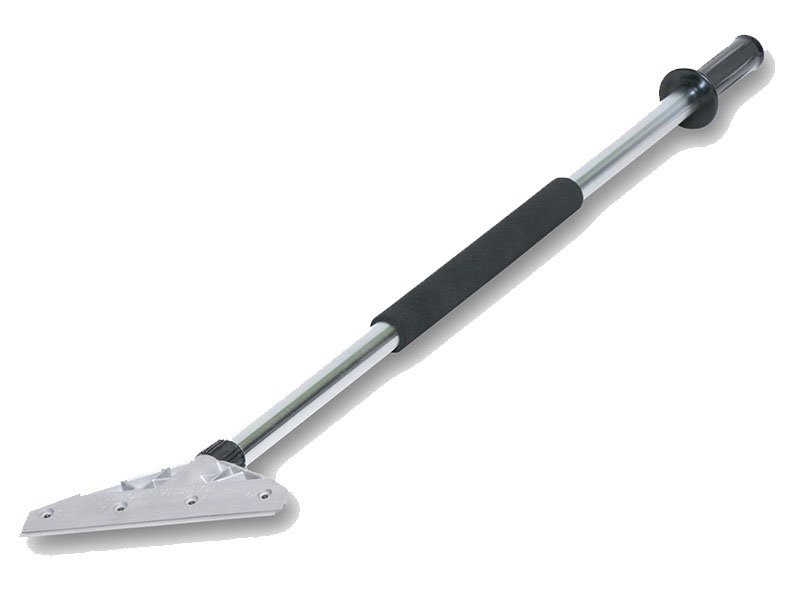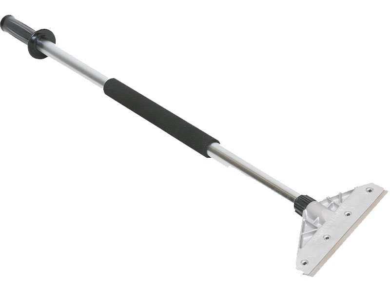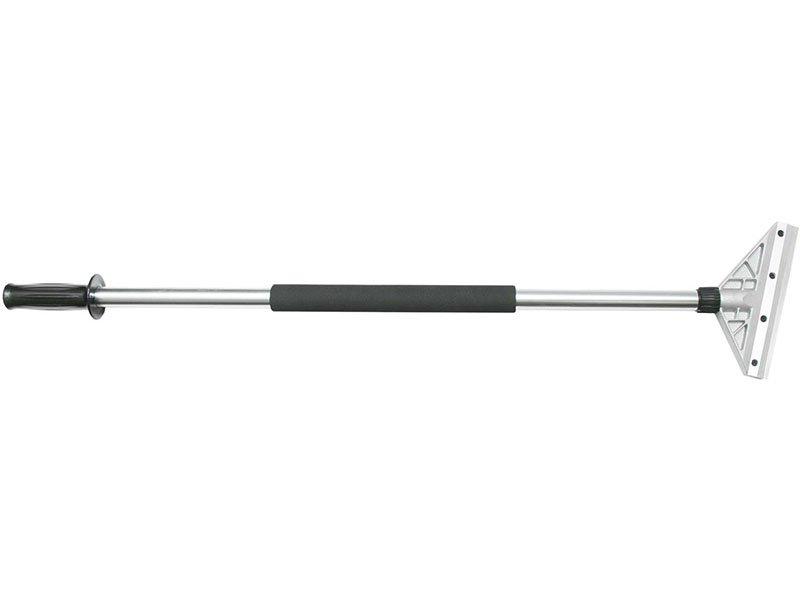 Marshalltown Schaber: Schwere Aluminiumkonstruktion, 203 mm breites doppelseitig gehärtetes Stahlblatt. Entfernt mühelos Bodenbeläge, Tapeten und Klebstoffe. Verstellbarer schwarzer Kunststoffgriff für Komfort und Pflegeleichtigkeit. Länge 990-1490 mm.