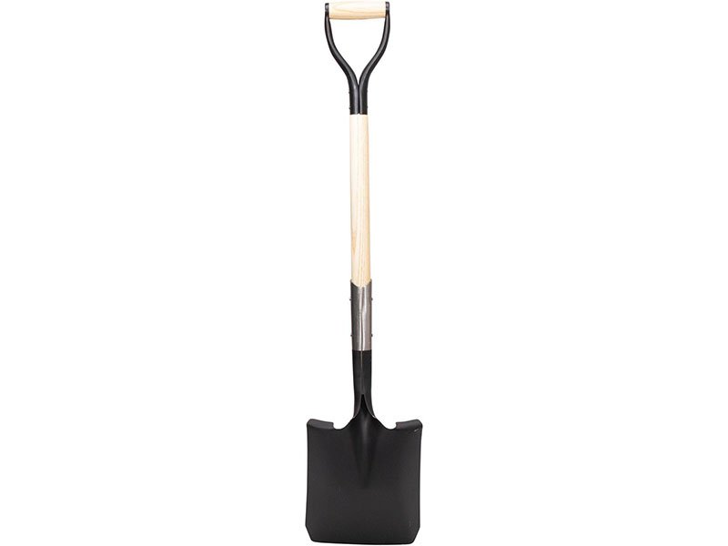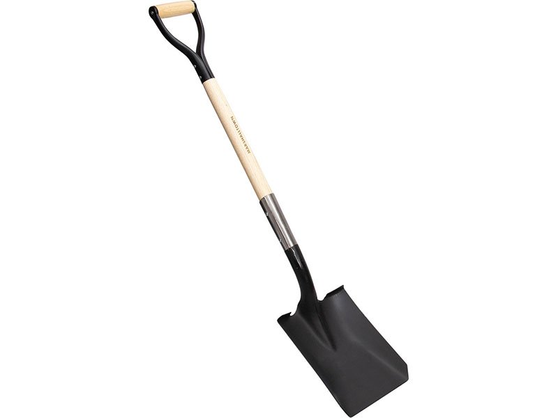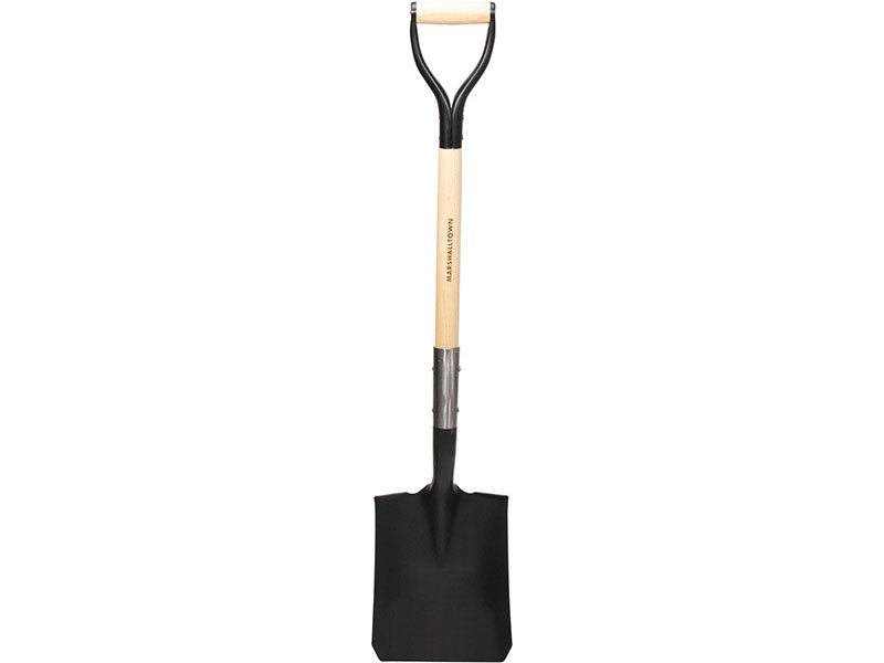 Marshalltown Schaufel mit eckigem, robustem Blatt aus gehärtetem Stahl der Stärke 14 mit Pulverbeschichtung. 787 mm langer Holzstiel mit D-Griff.