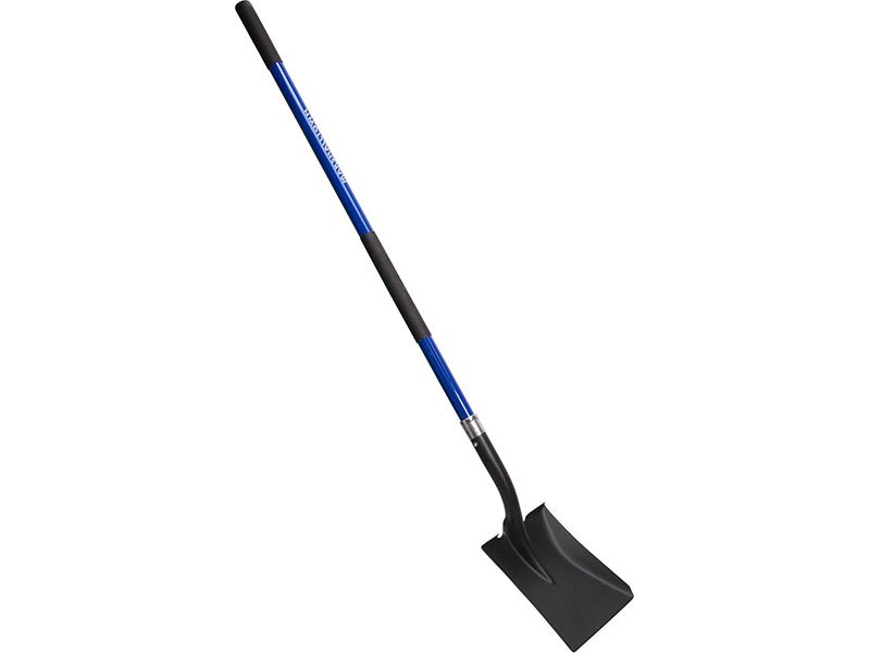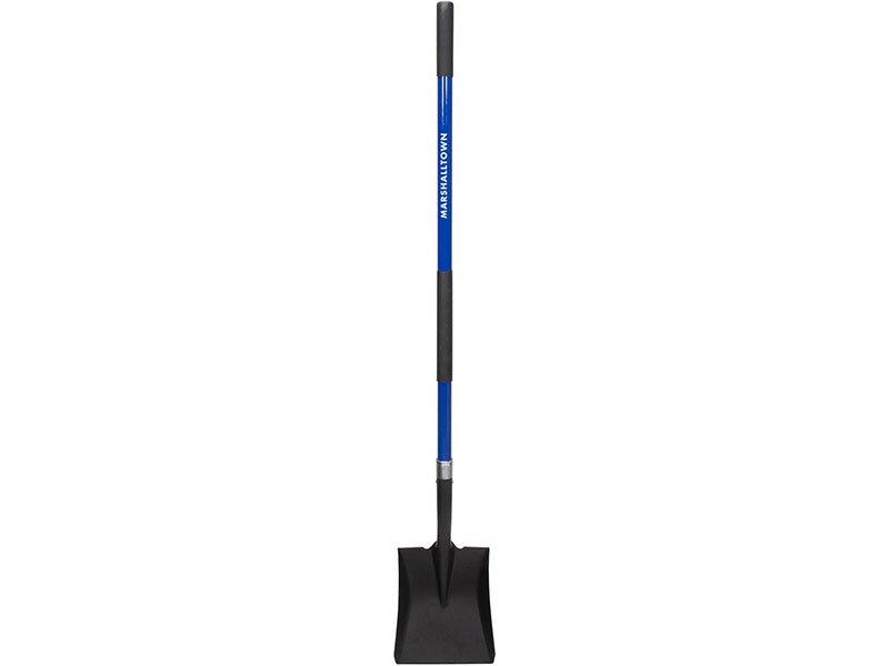Marshalltown Schaufel mit eckigem, robustem Blatt aus gehärtetem Stahl der Stärke 14 mit Pulverbeschichtung. 1219 mm langer Fiberglas-Stiel.