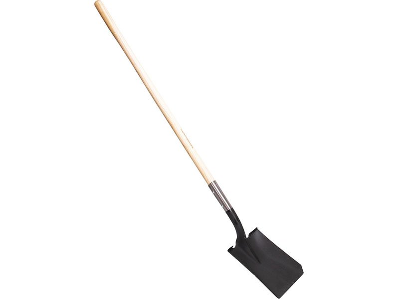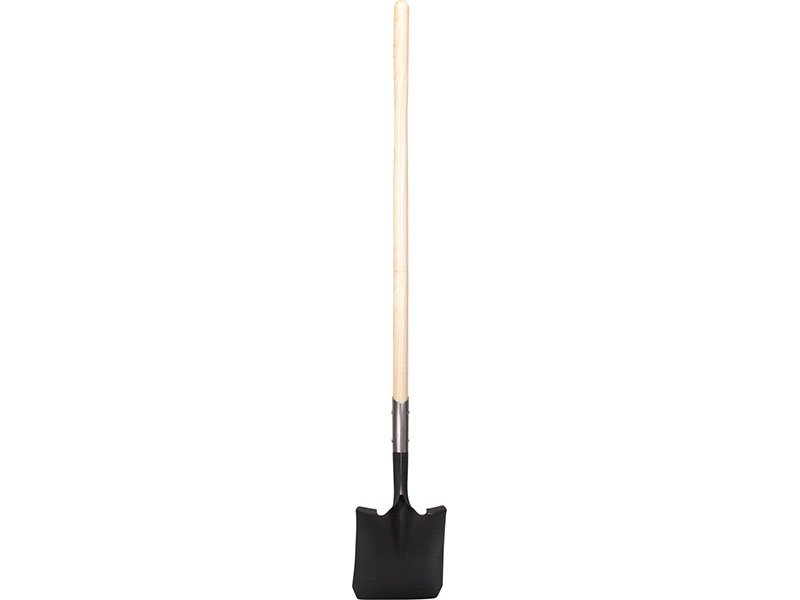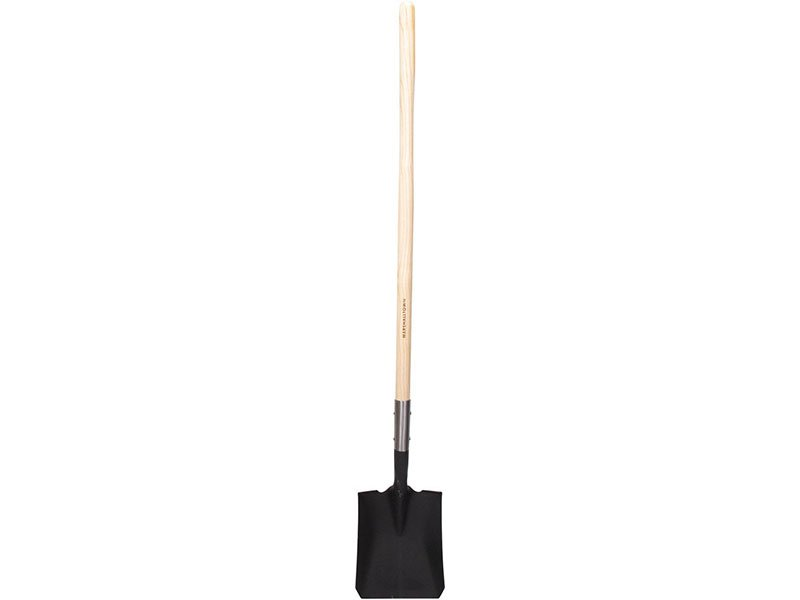 Marshalltown Schaufel mit eckigem, robustem Blatt aus gehärtetem Stahl der Stärke 14 mit Pulverbeschichtung. 1219 mm langer Holzstiel.