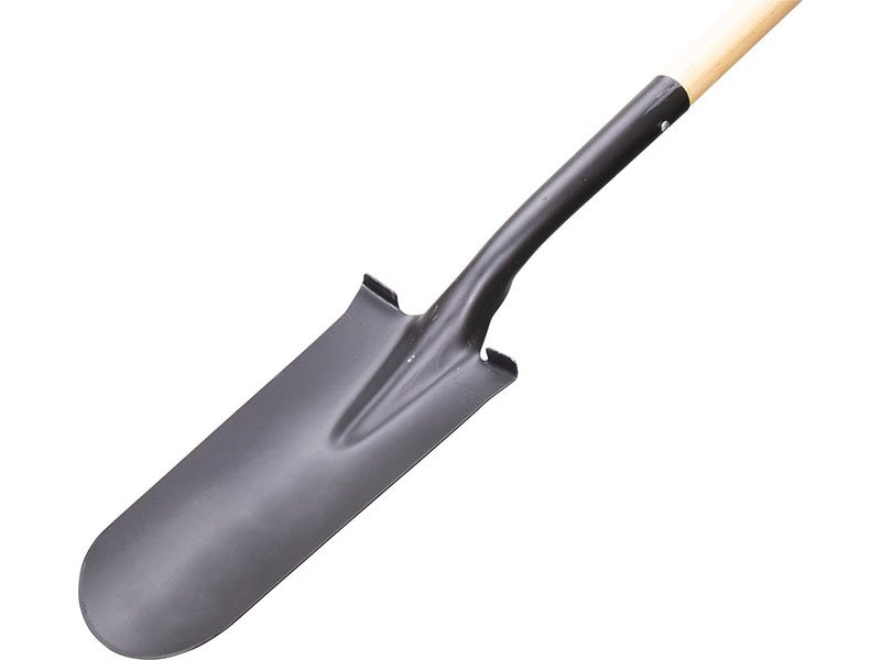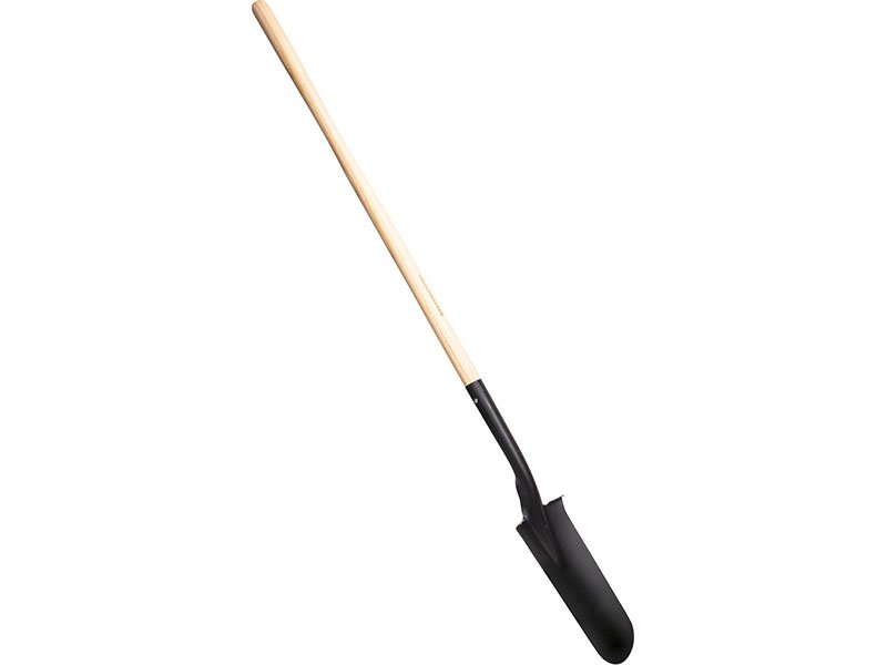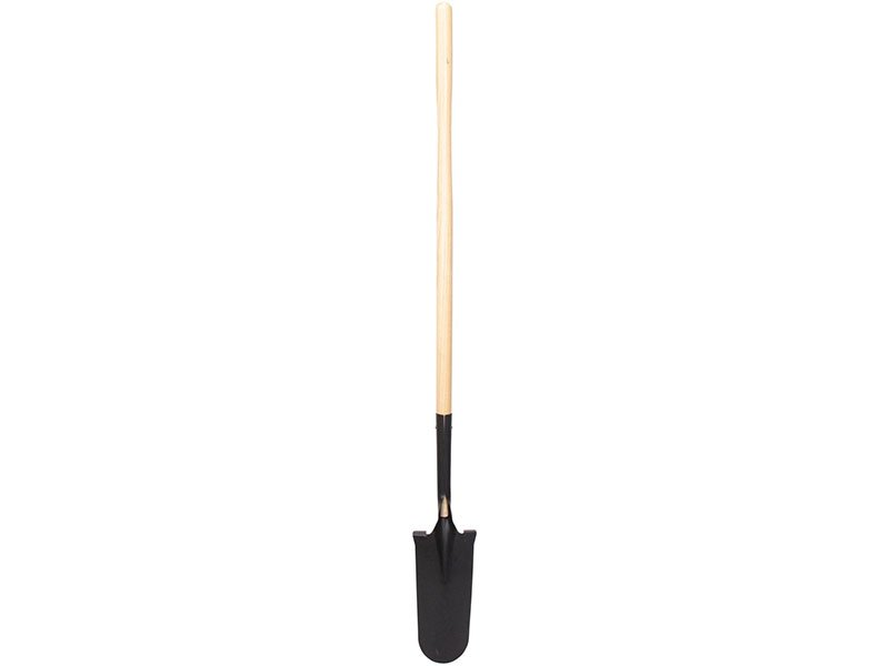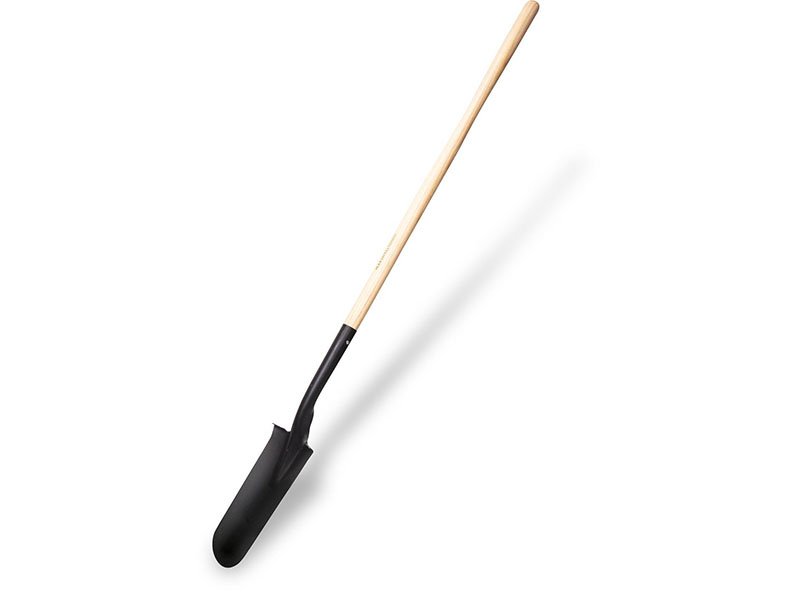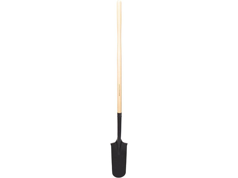 Marshalltown schmale Schaufel mit abgerundetem, robustem Blatt aus gehärtetem Stahl der Stärke 14 mit Pulverbeschichtung. 1219 mm langer Holzstiel.