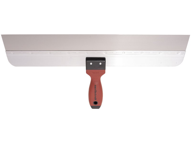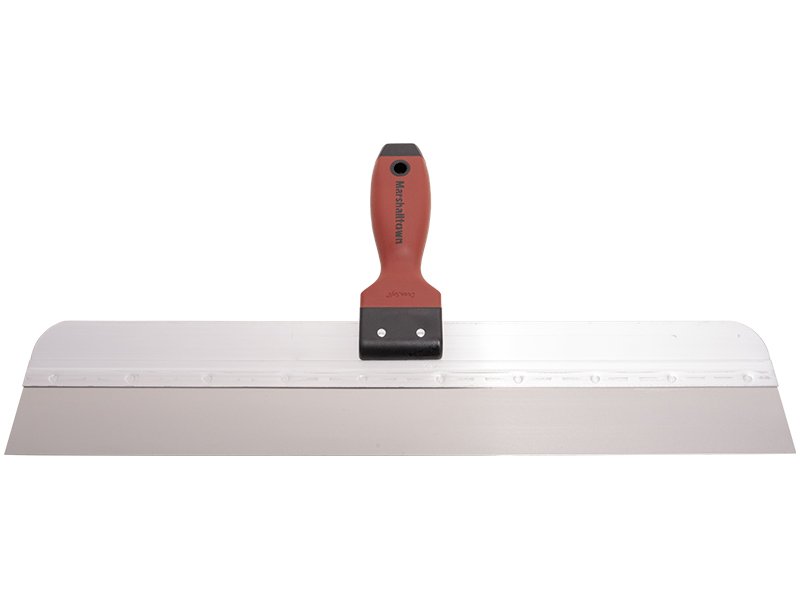 Marshalltown Flächenspachtel: Hochwertiges Edelstahlblatt mit Aluminium-Trägerplatte. Perfekt für Wandkitt, Trockenbaufugen und Oberflächenabschaben. Konisches Blatt für präzise Eckarbeiten. Langlebiger Durasoft Griff. Maße: 508×57 mm