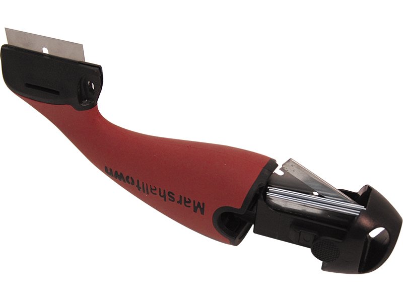 Das Marshalltown Schneidemesser hat einen ergonomisch geformten Durasoft Griff für mehr Komfort und weniger Ermüdung. Es verfügt über einen Verriegelungsmechanismus, der sicherstellt, dass die Klinge fest arretiert ist, aber schnell und einfach gewechselt werden kann. Außerdem verfügt es über eine magnetische Klingenablage, die drei zusätzliche Klingen aufnimmt. Am Griffende ist ein Aufhängeloch zur besseren Aufbewahrung.