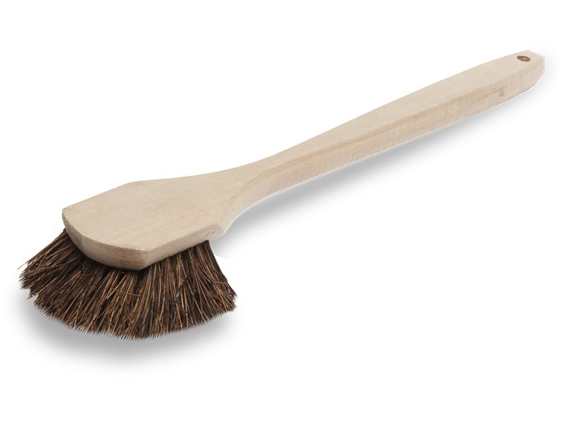 Marshalltown Schrubberbürste mit Palmyra-Borsten und 508mm langem Holzstiel, ideal für die Reinigung von losem Mörtel von Ziegeln und Blöcken.