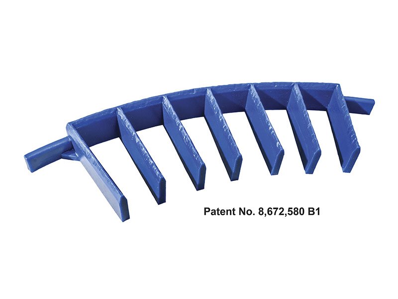 Der Stempel von Marshalltown ist hergestellt aus hartem Kunststoff. Der Stempel kann bei Randmustern bei Betonoberflächen eine Biegung aus Ziegeln herstellen. Die Fugenlinien sind 13 mm tief. Er ist blau und starr.