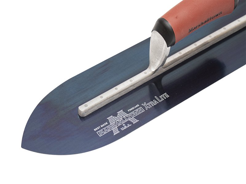 Die Marshalltown Spitzglättkelle ist, wie unsere anderen Betonglätter, aus hochwertigem, langlebigem Blaustahl gefertigt und verfügt über ein neues, innovatives Blattdesign. Das spitze Kellenende ist perfekt für die Bearbeitung von schwer zugänglichen Stellen oder engen Ecken für ein gleichmäßiges, professionelles Finish. Der patentierte Durasoft Griff liegt gut in der Hand und mindert die Ermüdung des Anwenders während des Gebrauchs. Der Griff ist mit einer leichten Halterung an der Klinge befestigt und mit massiven Edelstahl-Durchgangsnieten gesichert, die eine hervorragende Haltekraft ermöglichen.