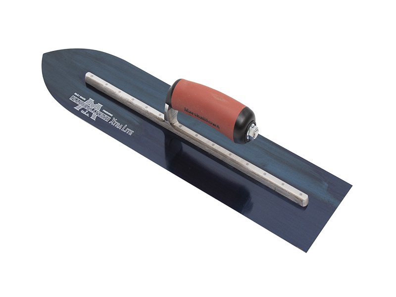 Marshalltown Spitzglättkelle aus hochwertigem Blaustahl, perfekt für schwer zugängliche Stellen, mit patentiertem Durasoft Griff. Maße: 457×114 mm.
