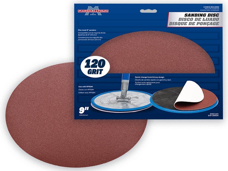 Die Marshalltown Schleifscheiben sind großartige Hilfsmittel, um umfangreiche Trockenbau- oder Putzschleifprojekte anzugehen. Die Standard-Schleifscheiben haben eine Aluminiumoxid-Körnung. Die Schleifscheiben sind mit einem robusten Papierkern und einem Schnellwechselsystem ausgestattet, das auf die meisten 229mm Schleifmaschinen passt. Sie passen hervorragend auf den Marshalltown Radial-Stangenschleifer. Die Packung ist mit fünf Schleifscheiben verpackt und hat eine 120er Körnung.